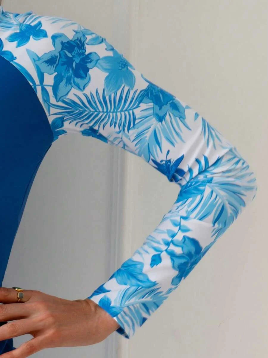 ✨ O tecido leve e com secagem rápida protege sua pele enquanto valoriza seu corpo com uma estampa tropical linda e moderna.